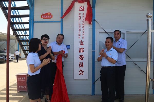 项目建在哪里,党旗就飘扬在哪里,党组织战斗堡垒作用就发挥到哪里。7月1日上午,在海口国家高新区两新组织党委的关心支持下,海南万泰长安制药项目部临时党支部揭牌成立大会暨“战酷暑,送清凉”活动同时在长安制药项目部隆重举行。高新区两新组织党委专职副书记傅爱萍到会并讲话,海南万泰常务副总颜利、党支部副书记孟晨、长安制药党支部书记汪立冬等相关人员共同参加了本次活动。