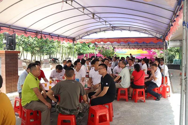 阳江镇镇委书记吕谊、阳江镇人民政府镇长王昌密和内园村村委会的领导们一起出席了本次村企联餐。