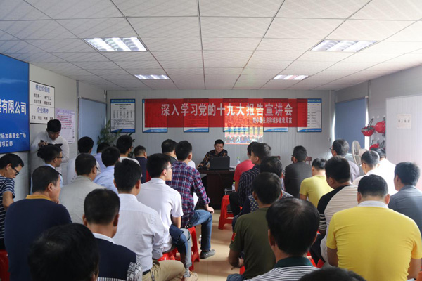 为深入贯彻落实十九大精神,将十九大精神全面、系统的传达给一线工人,按照公司的总体要求和部署,继11月25日成功举行第一次十九大精神宣讲会后,海南万泰计划将在各项目部以丰富多样的形式贯彻落实十九大精神。11月30日,由琼中县住建局相关领导组成的宣讲团到海南万泰承建的琼中县加钗农场加鑫商业广场项目开展十九大精神宣讲会。项目部全体工人、琼中县各工程建设项目代表参加了宣讲会。