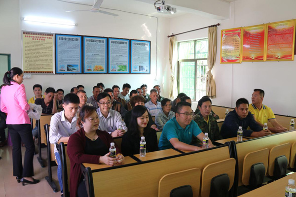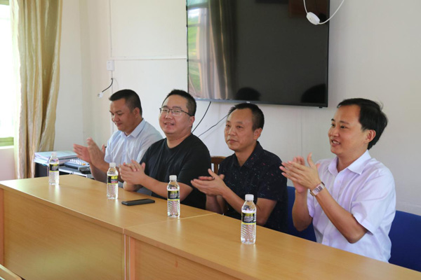 (海南万泰公司总经理张小龙、保亭县住建局、保亭县六弓乡田圮村相关领导与村民们举行座谈会)