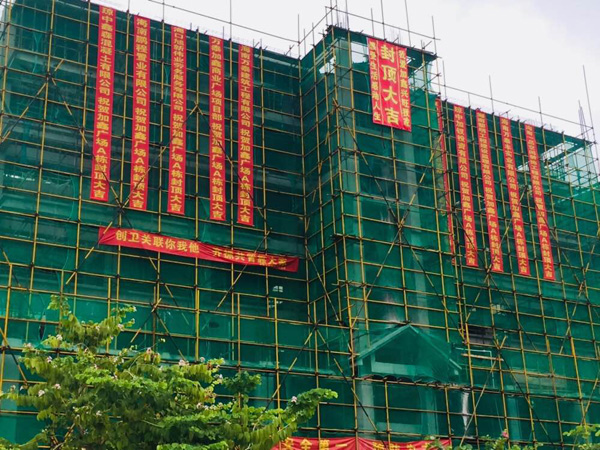 加钗农场加鑫商业广场项目自今年3月份开工建设以来,海南万泰立足项目建设,抽调精兵强将全力投入到项目施工当中,仅用了7个月时间,就顺利完成了项目A栋的主体建设,于今天喜迎封顶。