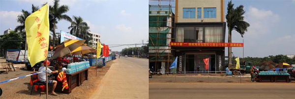 29日比赛当天,公司常务副总颜利亲自带队前往红旗镇指挥工作。在项目部外设置了临时补给站,为途经该赛段的运动员免费提供矿泉水、饮料等饮品。此外,还为执勤的武警官兵免费发放矿泉水、饮料。