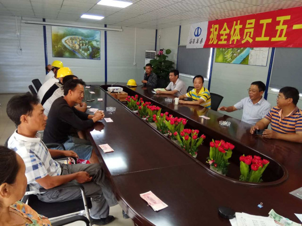 受五指山清能置业有限公司董事长罗晓东,海南万泰建筑工程有限公司总经理张小龙的委托,5月1日上午,五指山清能置业有限公司总工程师向俊宜、海南万泰清能丽景湾项目经理邱福汉以及项目部管理人员走访了清能丽景湾项目的各班组,转达了罗晓东董事长、张小龙总经理对项目部一线员工的亲切问候,并给奋战在一线的同志们送上慰问金及餐补,对坚守在施工一线的员工们表示衷心的感谢。在座谈会上,慰问组一行详细了解了大家的工作和生活情况,要求他们注意抓好工期质量安全工作,注重和谐团队建设;鼓励大家坚定信心,赶抢工期、注重质量安全工作,为万泰建筑做出新的贡献。