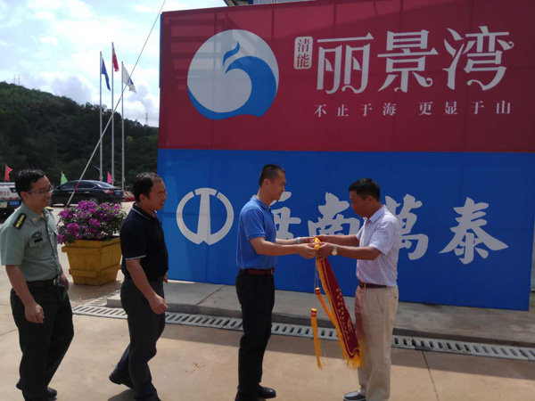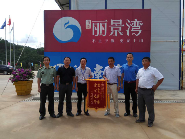 五指山市毛道乡武装部部长胡国万为海南万泰清能丽景湾项目部送锦旗。