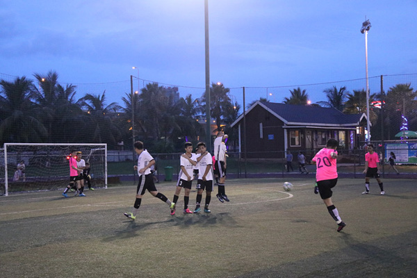 下半场比赛开打,万泰建筑的队员们调整了比赛策略,很快便掌握了场上的主动权,率先破门。传切、配合、突破、射门,攻防转换游刃有余,每一个进攻回合都压制着对手。在上半场落后两球的情况下,队员们沉着冷静,将战术布置很好的贯彻到每一个回合当中,下半场进行到一半,万泰球队再次通过传切配合攻破对方球门,2:2追平比分。此时,场上的局势再次回到起点。随着比赛的不断进行,双方的身体对抗也逐渐加强,场上的局势开始进入白热化阶段。然而,万泰建筑的队员们找到了适合自己的进攻方式,乘胜追击,终场前的最后10分钟再度两破对方球门,以6:4逆转对手。最终,万泰建筑通过奋力的拼搏,连追四球,以总比分6:4战胜对手,小组出线。