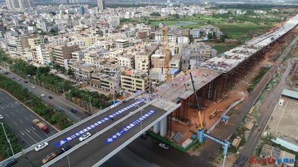 海秀快速路二期项目主线高架桥合龙。海口日报记者 陈长宇 摄