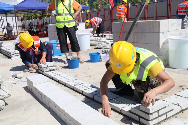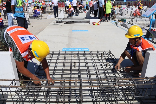 本次竞赛队伍有来自中央驻琼及省属大型企事业单位、各地市企事业单位,竞赛共有砌筑工、钢筋工2个职业(工种),砌筑工和钢筋工各17支单位队伍,共100多名选手参赛,竞赛内容均由理论考试和实际操作比赛两部分组成。公司每个工种各选派出1支队伍参加了竞赛,公司党支部及工会还组织阵容强大的啦啦队伍到场为选手助阵。