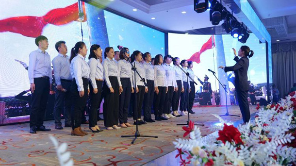 现场暖意融融,一首首饱含真情的动听歌曲,一段段令人欣喜的舞蹈,都赢得与会来宾时而阵阵喝彩,时而捧腹大笑,会场里一片祥和。“晚宴就像家宴,让人很放松,感觉就像家里来了很多客人,特别尽兴。”一位同事兴奋地与邻桌分享着此刻的心情。