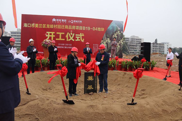2018年12月16日上午10点18分,龙岐村项目B19-04地块开工仪式在大英山东四路和大英山东二街交汇处隆重举行。海口市征收局副局长王辉,美兰区人大副主任、龙岐指挥部指挥长刘慧义,龙岐指挥部副指挥长谭显知,绿地海南事业部工程总监赵四清、合约部总监陈梅、城市更新部总监、龙岐项目总经理魏和平、贵州建工集团有限公司副总经理李小峰、龙岐项目部负责人张小龙、海南建工集团原董事长曹书明及美兰区房屋征收局、项目指挥部、建设单位工作人员代表参加开工仪式。