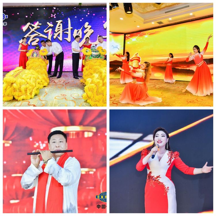 答谢晚宴上,海南万泰建筑工程有限公司、金贸街道商会等单位分别表演的大合唱《军魂》、《党颂》、女声独唱《我和我的祖国》等精彩纷呈的节目轮番上阵,热情的舞蹈和嘹亮的歌声点燃了现场的气氛,大家举杯共饮,共同庆祝这一美好的时刻。