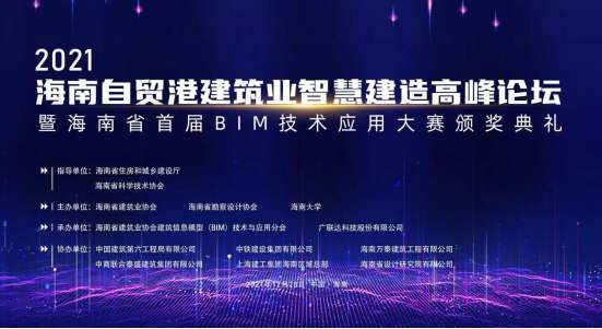 2021年12月28日上午,由海南省建筑业协会、省勘察设计协会、海南大学主办,海南万泰建筑工程有限公司等单位协办的2021海南自贸港建筑业智慧建造高峰论坛暨海南省首届BIM技术应用大赛颁奖典礼在海口新埠岛诺富特酒店顺利召开。中国建筑业协会会长齐骥 ,海南省住房和城乡建设厅副厅刘联伟,海南省科学技术协会副主席林强等相关单位领导出席了本次会议。海南万泰公司总经理张小龙作为受邀嘉宾参加本次会议,万泰承建的省政务中心二期项目在本次会议上荣获海南省首届BIM技术应用大赛“优秀”奖。
