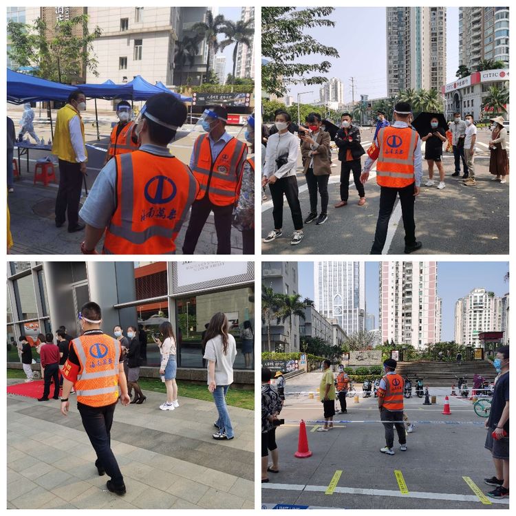 不忘初心,肩负担当。4月6日,龙华区政府进行了主城区全员核酸检测工作,在公司常务副总颜利的带领下,公司员工分批次,有秩序, 有组织地奔赴金贸街道辖区内的置地花园、电力村、海口湾、百方广场等区域核酸检测点,协助开展核酸检测工作,做好现场秩序维护。“请大家间隔1米排好队”“请戴好口罩,提前打开健康码”……从中午到晚上9时,海南万泰公司的员工坚守岗位尽职尽责,维护好核酸检测人员队伍秩序,耐心解答群众的疑问,安抚焦急等待的心情,帮助群众操作健康码,引导老人、孕妇优先检测,充分彰显了无私奉献的志愿精神。