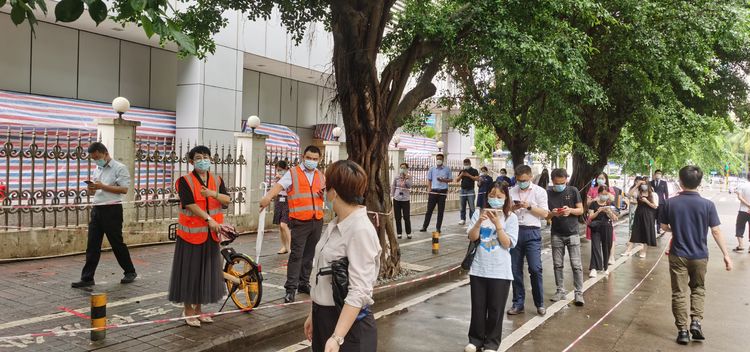 本次疫情突如其来,核酸检测工作时间紧迫,党员志愿者们克服困难,到达指定点位开展协调工作。“您好,请按顺序排好队,保持一米距离;请大家提前打开健康码,避免网络拥堵影响检测;你看这里就可以打开健康码;请佩戴好口罩……”秩序维护、测量体温、提供咨询引导、解决群众困难、带领孕妇及行动不便的老人走绿色通道等等,从中午到晚上,大家各司其职,与医务人员并肩作战,为检测现场“保驾护航”,赢得了群众的认可与好评。