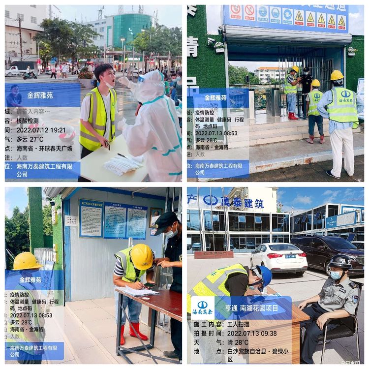 为做到疫情防控工作全覆盖,万泰公司在各个在建项目开展全员核酸检测工作,确保从严从紧落实疫情防控各项措施和值班值守制度,发挥好“哨卡”作用,严格落实规范佩戴口罩、进出验码等措施,将疫情“拒”之门外。