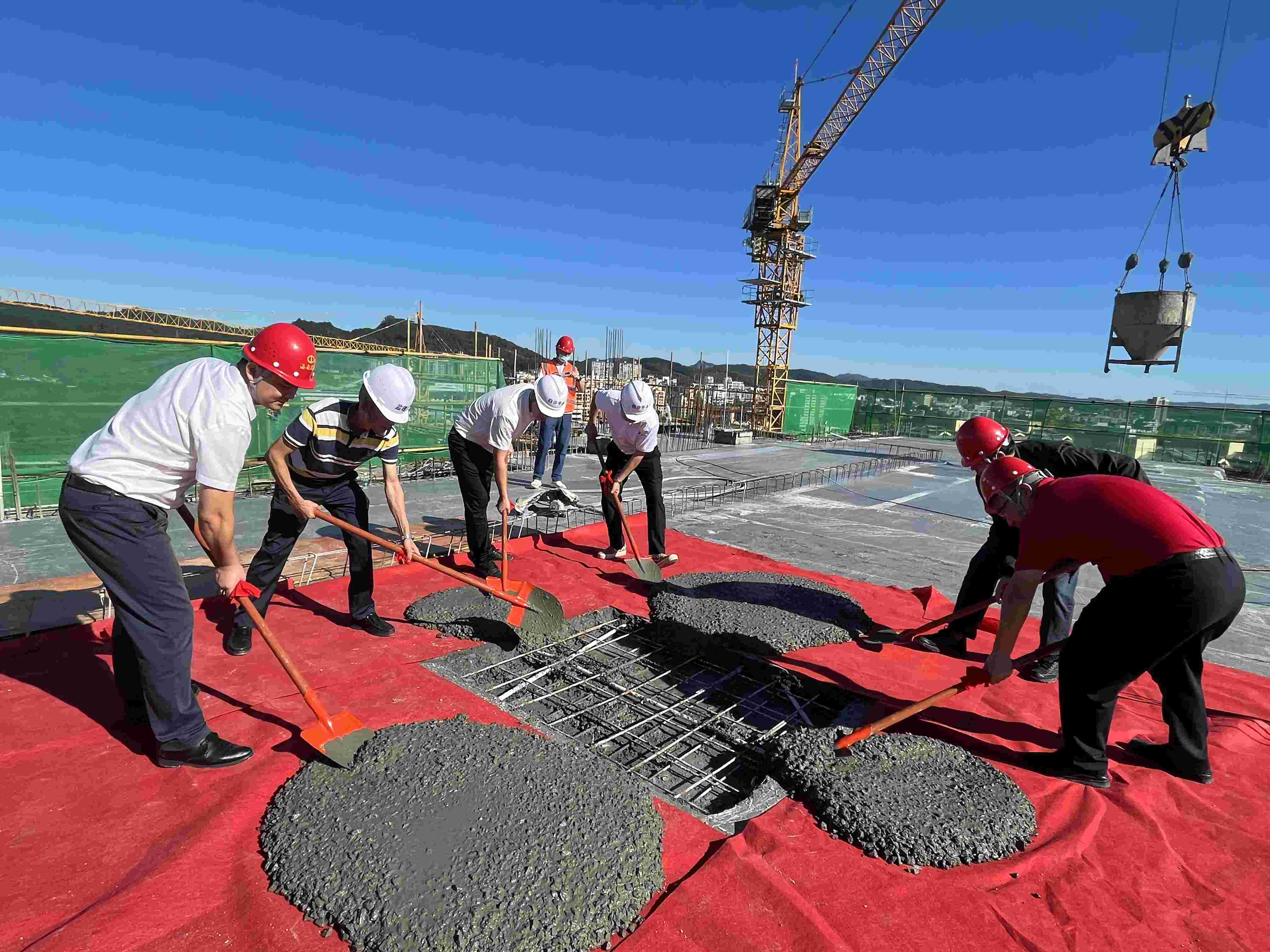 为了贯彻落实党的二十大精神,加快推进白沙重点民生工程建设,致力于打造宜居新生活,2022年11月29日,由海南万泰建筑工程有限公司承建的省重点安居房项目——白沙亨通·南湖花园项目主体结构全面封顶仪式圆满举行。白沙县住建局、审批局、资规局、不动产中心及融媒体中心相关负责人,亨通安居集团董事长周金华,万泰公司副总经理张宇、工程部部长侯领等有关人员参加本次封顶仪式,一同见证这一喜庆时刻。仪式由亨通安居集团经理冼继利主持。