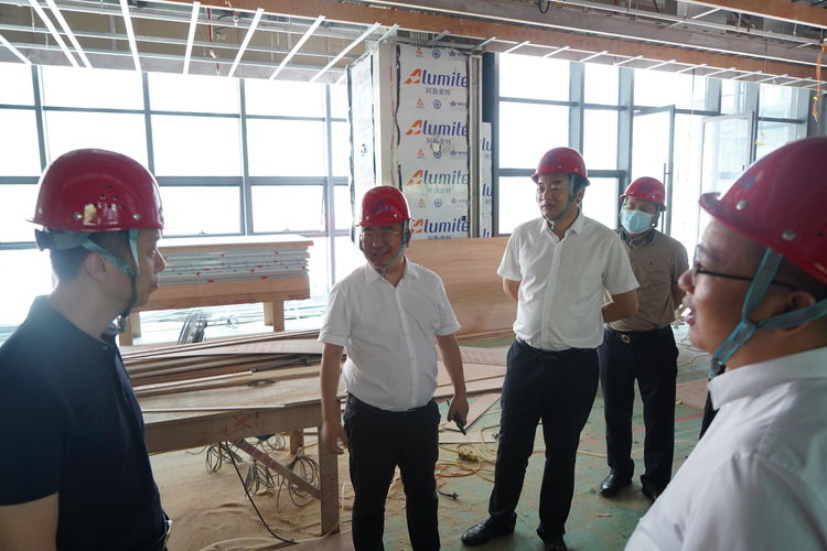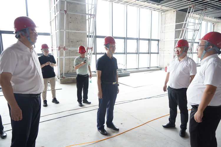 会后,双方到万泰公司承建的海南省政务服务中心二期项目现场进行实地考察。通过走访调研,李健书记等人深入了解了项目的技术难点与创新之处,并对项目建设给予了肯定。