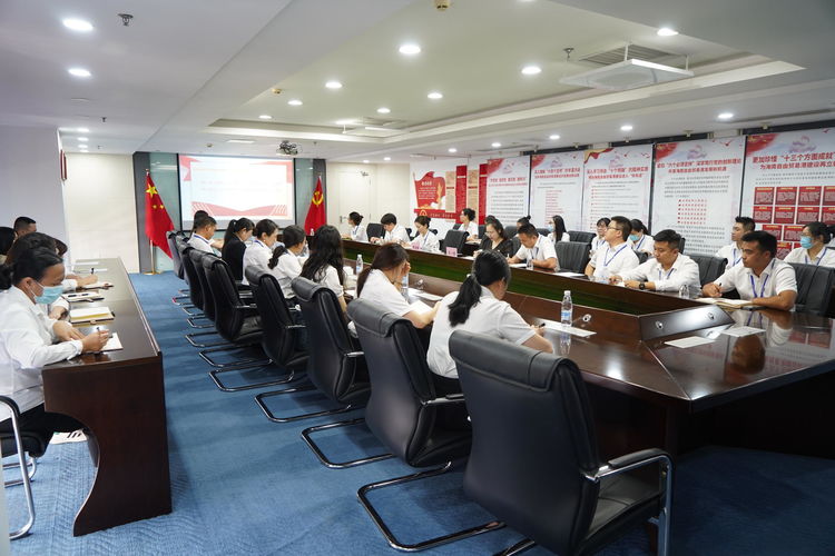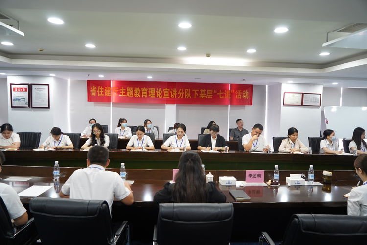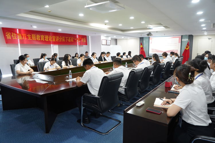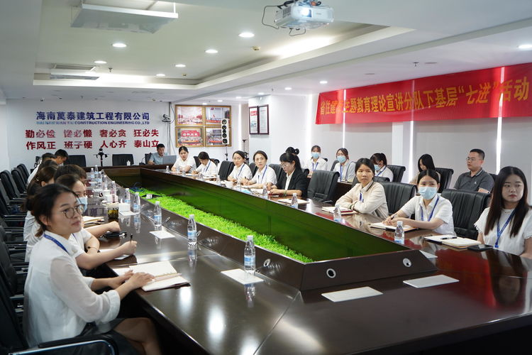 为深入学习党的二十大精神,开展好学习贯彻习近平新时代中国特色社会主义思想主题教育,引导广大党员群众深刻领悟“两个确立”、增强“四个意识”、坚定“四个自信”、做到“两个维护”,推动党的二十大精神在基层走深走实,2023年5月25日,海南省住房和城乡建设厅人事处二级调研员、行业党委专职副书记李述朝,党建指导员陈小娜走进海南万泰公司开展学习贯彻习近平新时代中国特色社会主义思想主题教育理论宣讲“七进”活动。万泰公司党员及员工近50人参加了本次宣讲活动。