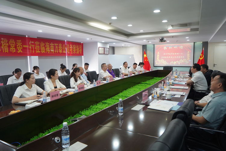 7月8日上午,湖北省武穴市委常委、统战部部长、市总工会主席徐楷一行莅临万泰公司开展座谈交流活动。双方围绕互相学习经验,拓展合作渠道等方面进行交流。武穴市财政局党组书记、局长程小明、武穴市梅川镇党委书记郭建涛、武穴市工商联主席邓广龙及武穴市政府有关部门领导,海南万泰公司有关人员参加会议。会议特别邀请中化学建设(海南)有限公司党支部副书记、总经理张小龙、湖北省政府驻海南办事处主任冯健、海南省湖北商会常务副会长兼秘书长胡卫东等人一同参加了座谈会。会议由海南万泰公司常务副总经理颜利主持。双方通过观看宣传片及以PPT的形式介绍了海南万泰公司的发展历程、取得的主要成绩以及未来企业发展战略。