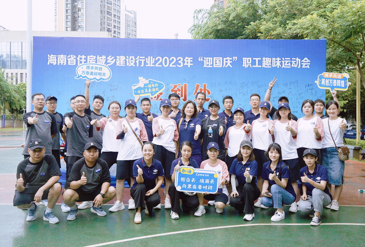 为推动全民健身事业高质量发展,丰富职工文体生活,增强职工体质,提升企业的团结向心力、凝聚力,2023年9月16日,海南万泰建筑工程有限公司党支部、工会参加了由省住建厅举办的海南省住房城乡建设行业2023年“迎国庆”职工趣味运动会,海南省农林水利交通建设工会常务副主席吴清新、省建设工会常务副主席刘志伟、省住建厅行业党委专职副书记李述朝等领导参加本次活动,来自省住建厅机关、直属单位及建设工会各基层工会的36支队伍、500余名队员投身赛场、一展风采。海南万泰代表队共派出1名领队、17名参赛选手参与这场体育盛宴。