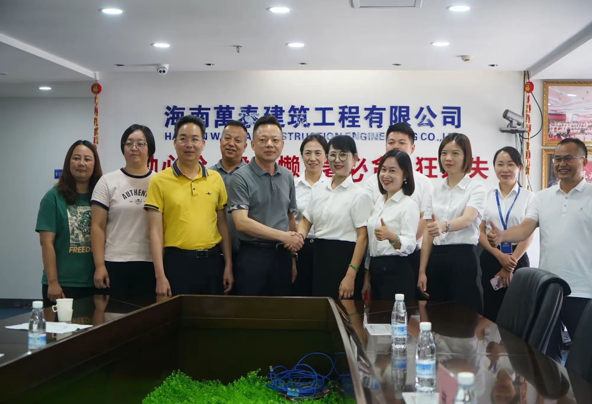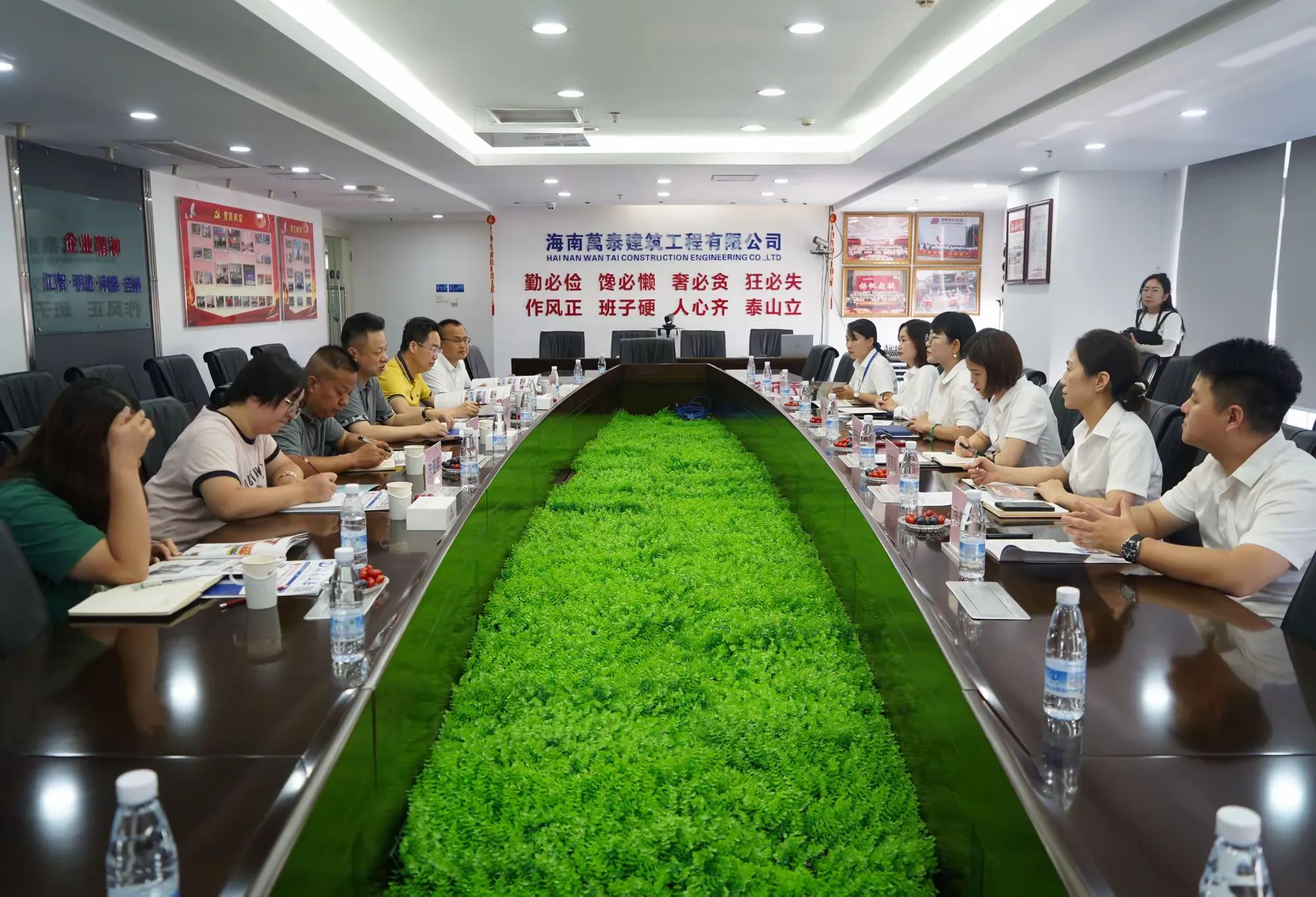 随后周炳才书记一行观看了海南万泰建筑工程有限公司宣传片。孟书记代表公司对海职院领导一行的走访交流示以热烈欢迎,并表示海职院作为海南省第一所独立设置的公办高职院校,教资丰富,人才培养水平优越,公司创始人便是来自于海职院的优秀人才,近些年海职院的多个优秀毕业生在万泰公司不断成长,为企业发展作出了诸多贡献。下一步,万泰公司将进一步深化与海职院的交流学习,在党建工作、校企合作、学生就业等多方面进行深入合作,达成合作双赢的共识,为海南自贸港建设做出应有的贡献。