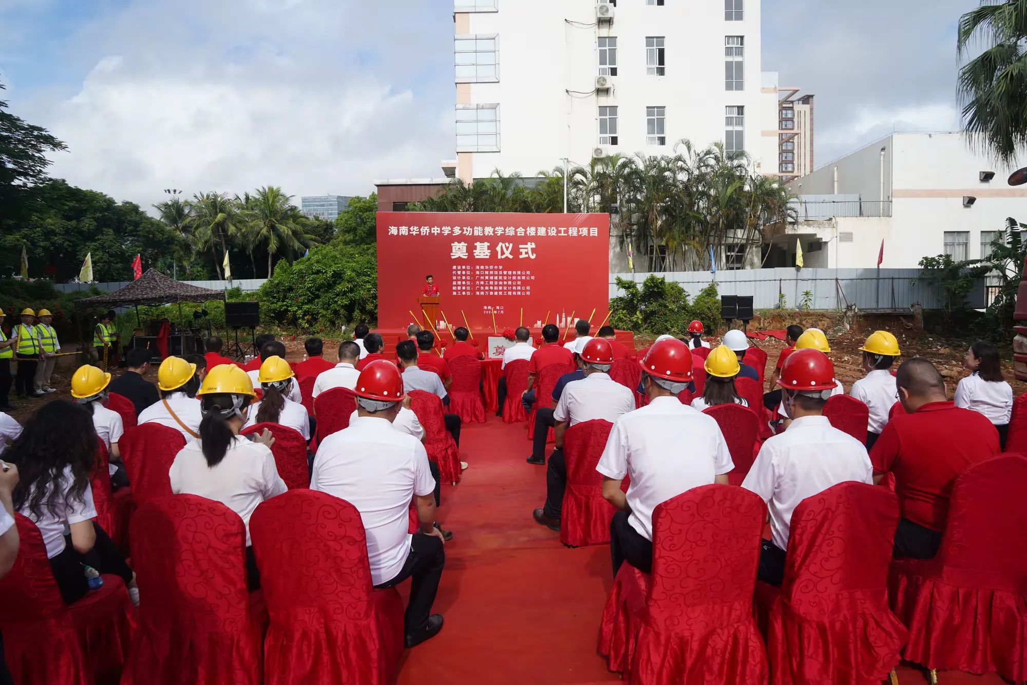 七月绿意争相艳,书生意气冠琼州。7月19日,由海南万泰建筑工程有限公司承建的海南华侨中学多功能教学综合楼建设工程项目举行开工仪式。海口市发改委党组成员、副主任庄华东,海南华侨中学党委副书记、校长张伟,党委委员、副校长吴撼宇,海口市城投集团党委副书记、董事、总经理孙传志以及代管、监理、施工单位相关人员参加了本次活动。仪式由海南华侨中学副校长吴泽纯主持。
