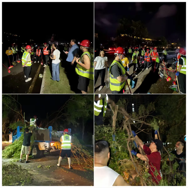 9月8日晚8时,在政府的号召和公司领导的发动下,广大党员职工主动请缨,报名参加灾后清障活动。当晚,40名公司支部党员干部、职工组成了志愿服务队,并多方调配轮式挖机2台、运输车3辆、抓机1台以及油锯、扫把等一批小型工具赶赴国兴大道开展路面清障工作,你锯树、他搬运、我扫地,大家各司其职,默契地参与到这次工作中。至凌晨2时,万泰公司所负责区域的清障工作顺利完成,路障问题已经良好解决,他们以实际行动诠释着党员的先锋模范作用。