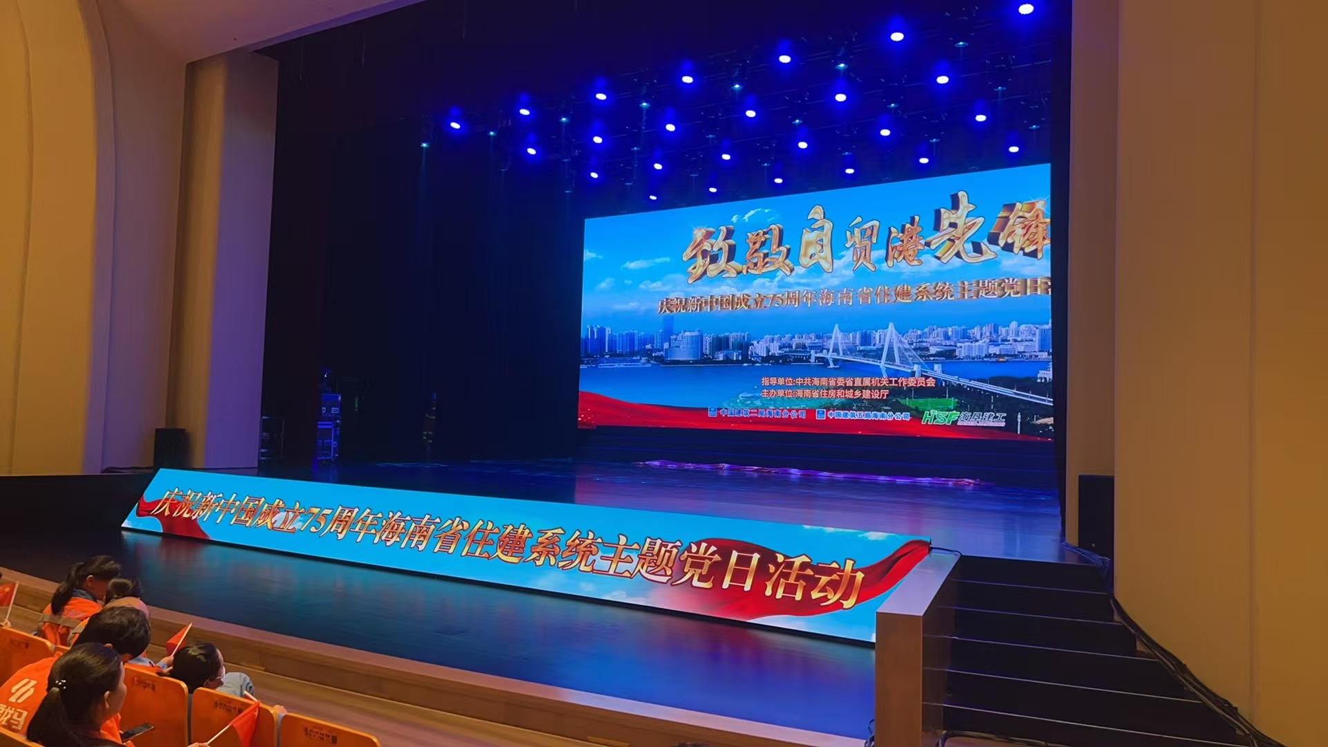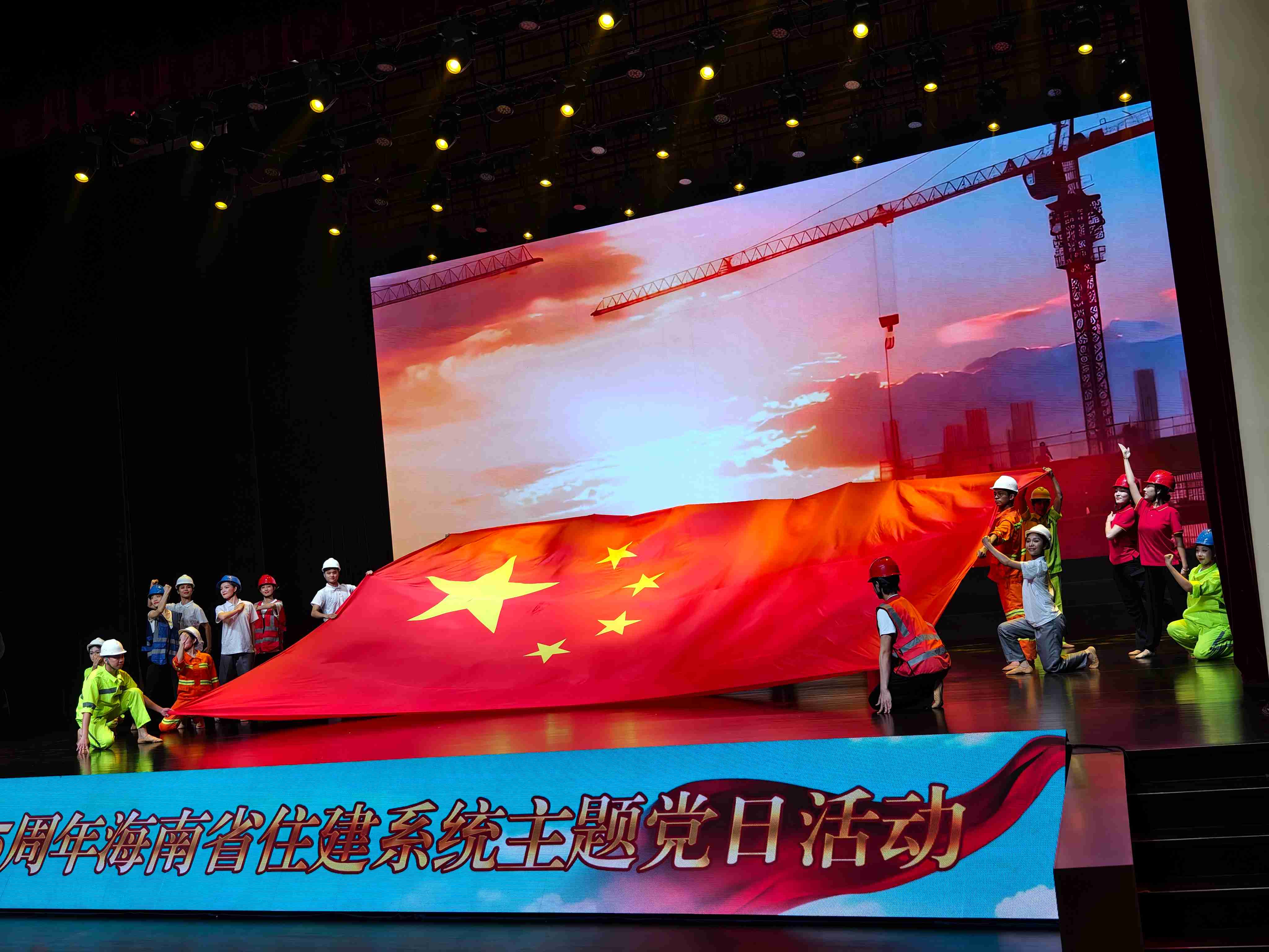 近日,由中共海南省委省直属机关工作委员会指导,海南省住房和城乡建设厅主办,中建二局海南分公司、中建五局海南分公司、海南农垦建工集团承办的庆祝新中国成立75周年“致敬自贸港先锋”主题党日活动在海口湾演艺中心成功举办。海南省委省直机关工委常务副书记吴明月、省委宣传部二级巡视员林尤铮,住建厅领导及全体党员干部,各市县住建行政主管部门主要负责人及各行业有关单位代表共计500余人参加。海南万泰公司总经理颜利率队参加本次活动。