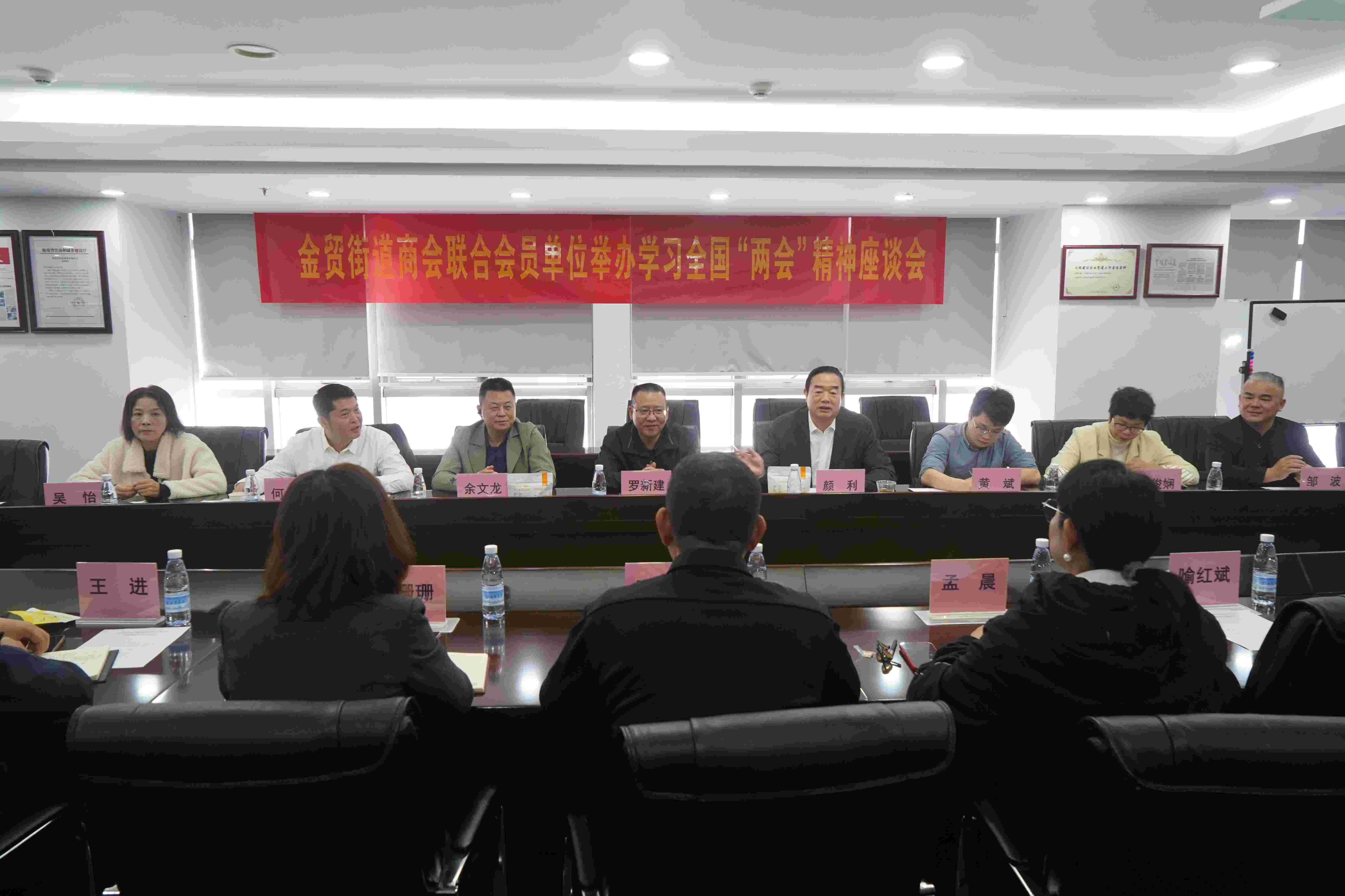 3月19日上午,海南万泰公司联合金贸街道商会组织开展了学习全国两会精神座谈活动。辖区金贸街道工委主任罗新建、武装部部长余文龙,金贸街道商会会长、公司总经理颜利,海垦基建公司、海口市农业产业协会等单位有关人员共同深入学习两会精神,为企业发展和地方经济建设注入新的动力。