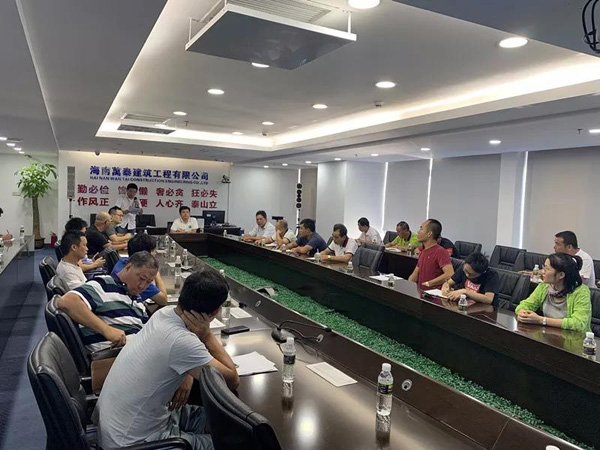 今年6月,是全国第十八个安全生产月。为贯彻落实海南省住房和城乡建设厅关于印发《海南省住房城乡建设系统2019年“安全生产月”暨安全生产隐患大排查活动方案》的通知要求,切实抓好现场安全生产工作,确保公司各项目的安全生产形势平稳。公司决定组织开展“防风险、除隐患、遏事故”为主题的“安全生产月”活动。6月28日,公司组织各项目负责人开展安全教育培训工作会议。