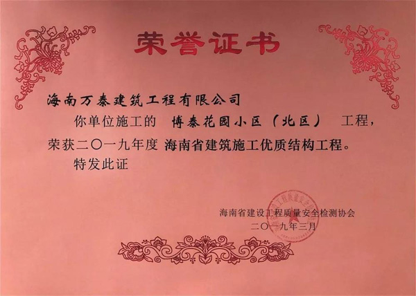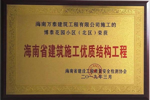 博泰花园小区(北区)“海南省建筑施工优质结构”奖
