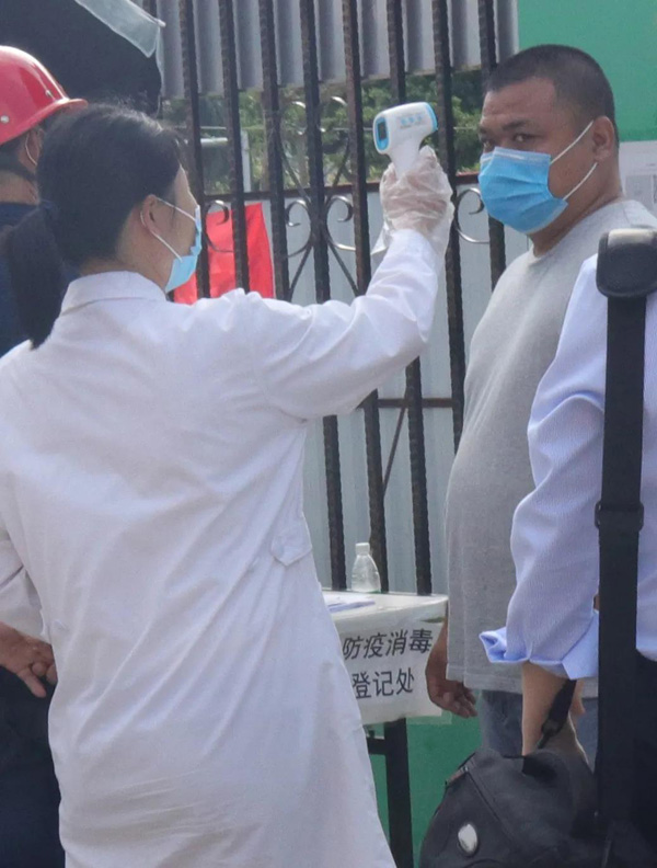 为一线建设者测量体温