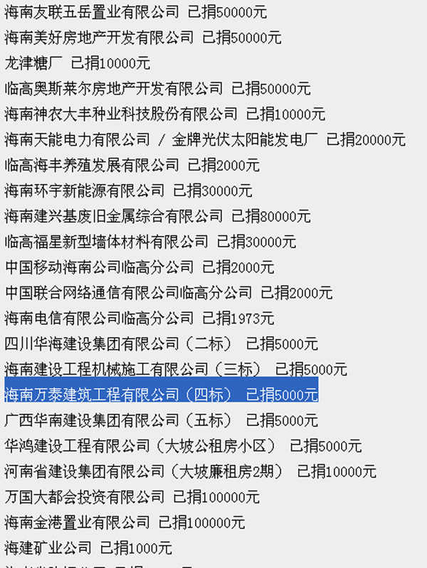 2013年临高县“爱心助学·阳光行动”企业捐款
