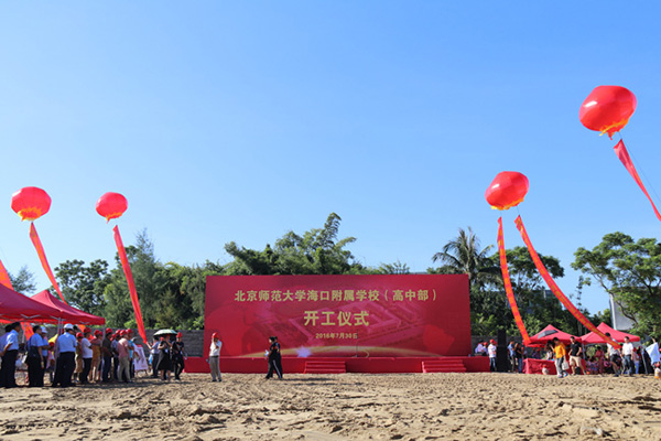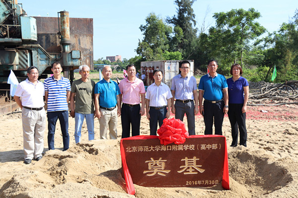 “北师大附校及海口培训基地(高中部)”项目是2015年海南省省委书记罗保铭亲自引进、副省长王路签约的省重点项目。该项目的引进将带动整个海南的教育发展,意义非凡。项目规划总规模4320个学位,96个教学班,分初中部和高中部,分步实施建设。首期建设高中部,计划完成时间为2017年9月;二期建设初中部,计划完成时间为2018年9月。