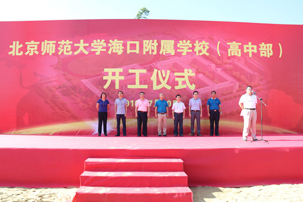 海口市城市建设投资有限公司董事长韩东光宣布开工典礼开始,海南万泰公司总工程师邹进安代表施工方发表了致辞,郑重承诺万泰公司将组建最强有力的管理团队,秉承“诚信务实、创新进取”的施工理念,严格按照施工规范、工艺流程、质量体系及海口市工地的“双创”标准,精心制定严密的施工进度计划,从第一道工序开始抓质量;从第一个工作日开始抓进度;从每一个细节处抓安全文明施工。保质、保量按期完成工程的建设,把北师大海口附校及培训基地项目建设成一个精品工程、满意工程。