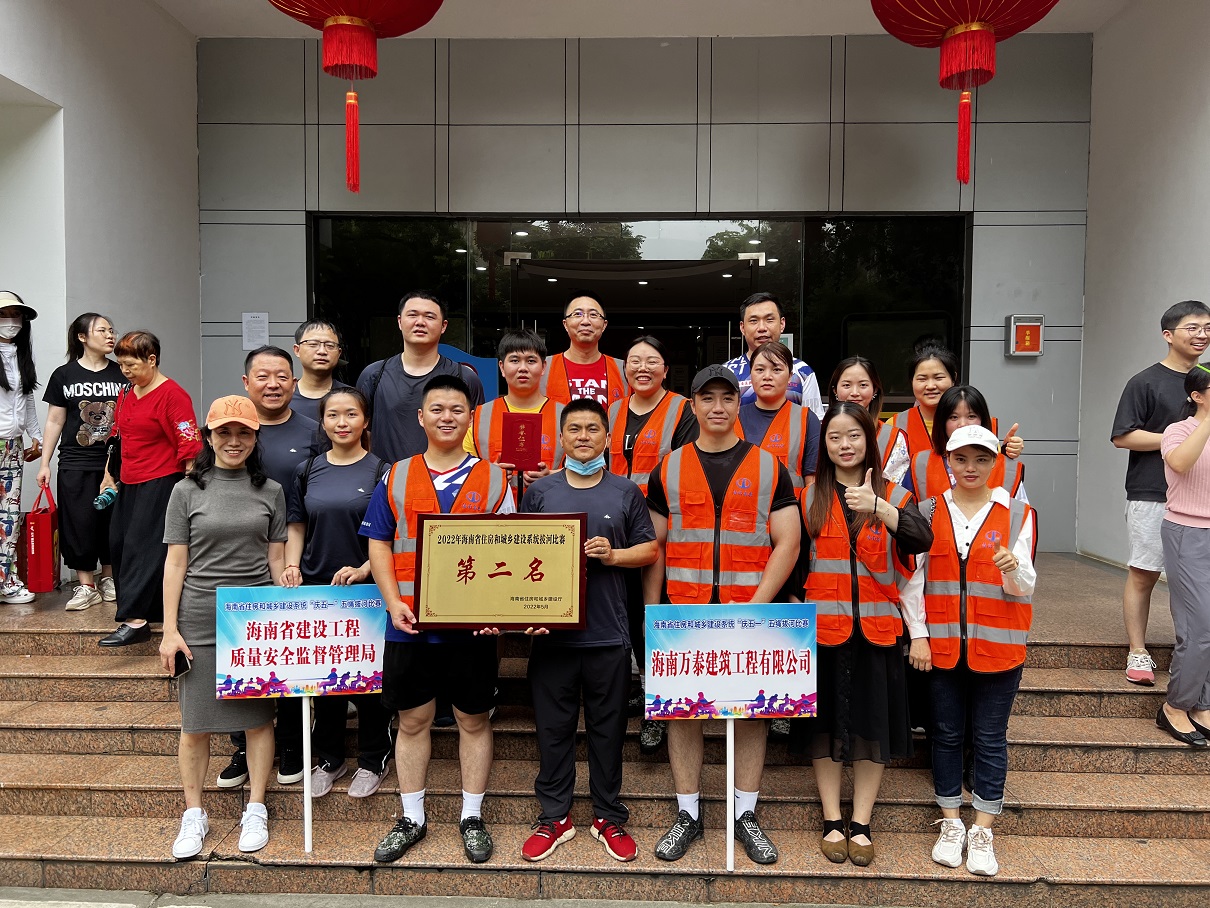 5月15日上午,海南万泰建筑工程有限公司党支部、工会组织员工参加了由省住建厅主办的“庆五一”五绳拔河比赛。省住建厅副厅长陈孝京、省建设工会专职副主席刘志伟、机关党委专职副书记莫百超,厅相关处室、直属单位及部分基层工会有关人员参加了本次比赛活动。万泰公司对本次活动非常重视,派出了由王斌、王威、张豪杰、张乐开、林溪婷、孙彤、张会岭组成的男女拔河队,韩文剑副总亲自率队组成啦啦队全程加油助威。