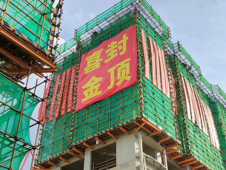 海南万泰公司承建的亨通·南湖花园项目12号楼喜封金顶