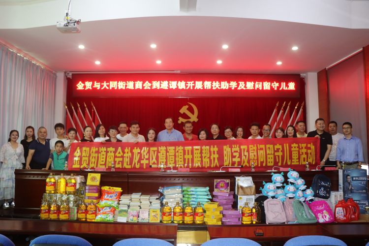 2021年9月19日,在中秋佳节来临之际,龙华区金贸街道商会、大同街道商会、遵谭镇政府、遵谭镇教育助学爱心社共同在遵谭镇开展爱心助学及慰问留守儿童活动。金贸街道商会会长、海南万泰常务副总颜利,党支部副书记孟晨,志愿服务队大队长王彦翔及工程部副部长张豪杰一行参加了本次活动。