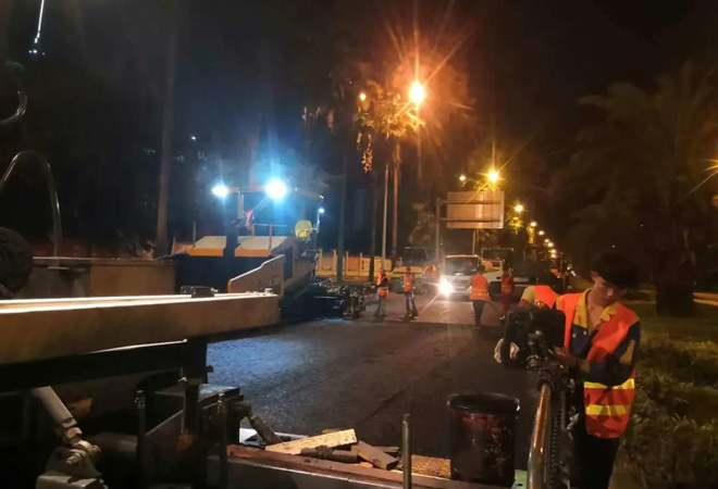 凝心聚力,彻夜奋战!海南万泰助力三亚总部经济区建设——三亚迎宾路道路改造工程即将竣工
