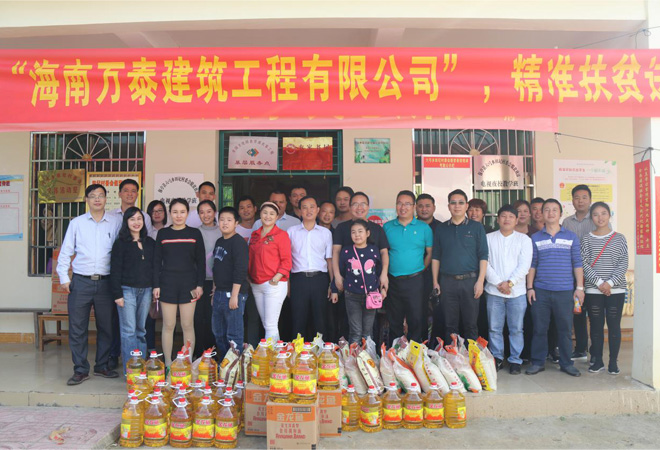 为积极响应国家“精准扶贫”政策,扛起企业责任,以实际行动回馈社会,同时,大力弘扬扶贫济困的传统美德,2017年12月9日,海南万泰建筑工程有限公司总经理张小龙带领公司各级领导及员工深入保亭黎族苗族自治县六弓乡田圮村,开展扶贫活动。