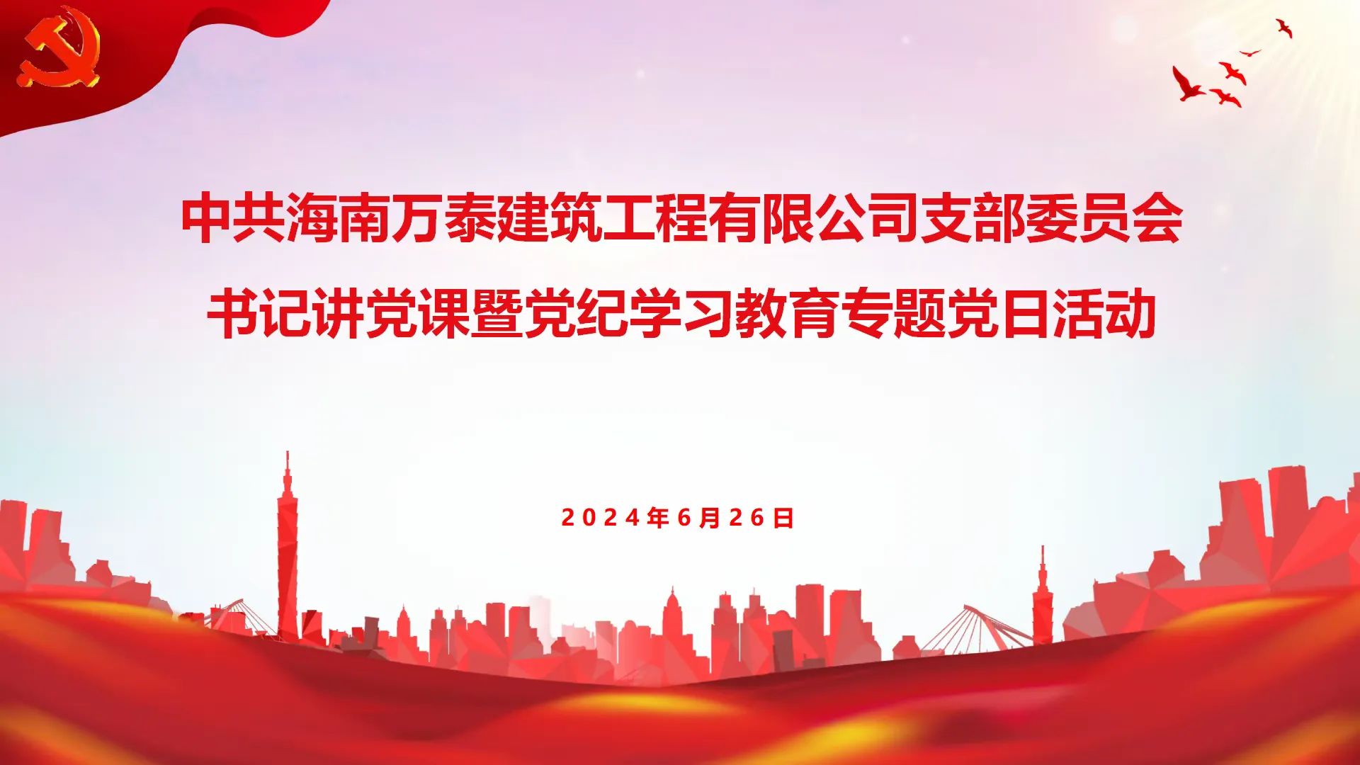 为深入开展好党纪学习教育工作,按照省住建行业党委的统一安排,结合公司党支部党纪学习教育工作方案,6月26日下午,党支部组织党员、积极分子及部分职工召开了书记讲党课暨党纪学习教育专题党日活动。6月26日下午,党支部组织党员、积极分子及部分职工召开了书记讲党课暨党纪学习教育专题党日活动。6月27日,为深入贯彻习近平总书记关于全面加强党的纪律建设的重要论述,增强党员党性修养,牢固树立纪律意识和规矩意识,助力企业高质量发展,在七一建党103周年到来之际,海南万泰公司党支部联合海垦基建公司党支部在海瑞文化公园举办“迎七一”建党103周年主题党日活动。